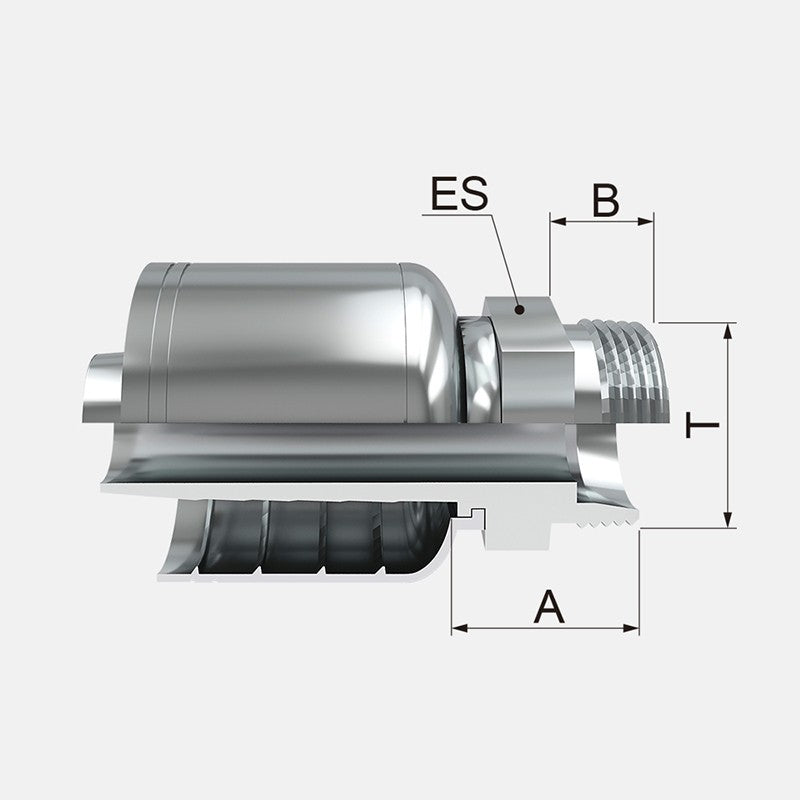 Conexion Crimpable Macho Recto Metrico asiento 24 de 1 3/8 pulg. (M22x1.5) x 3/8 pulg. ID Manguera, Covalca, serie FK, Acero (1D043-15-6-I)